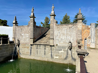 A large reservoir completes the upper level of the Jardim. Its balcony serves as a marvelous miradouro, with views over the geometry of the hedgerows and the army of allegorical and historical figures. On the south end of the pool, a small stair leads into the water. We imagine the Bishop taking an cool dip, swimming to the formal stair on the opposite end, and climbing out to survey his creation.