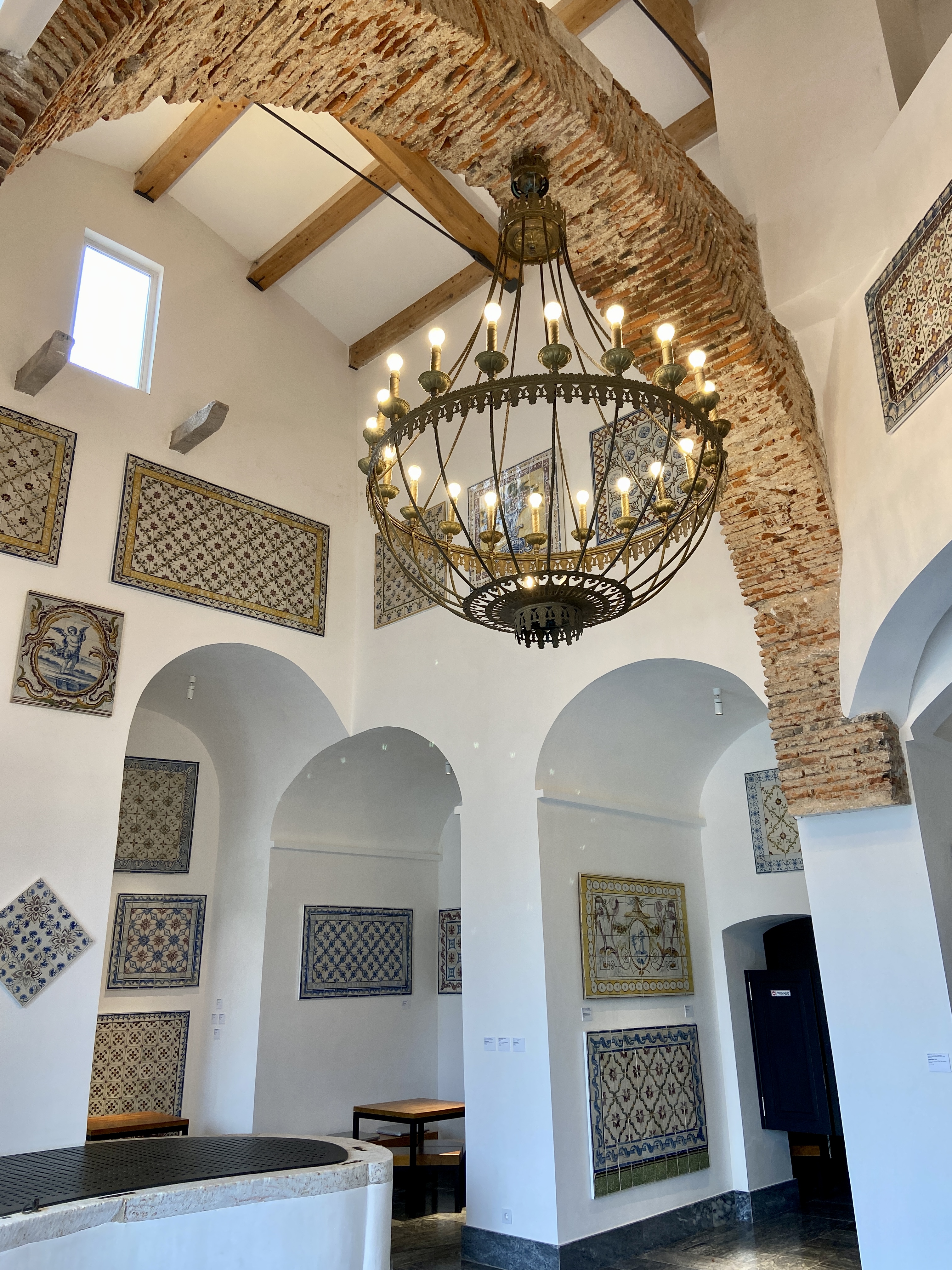 Just down the street is the Museu Berardo Estremoz, in the old Palácio Tocha, all about azulejos. The Museu, which opened in 2020, offers an eight-hundred-page catalog as a download. The galleries are fresh and comfortable, but there are no docents. The route starts in fifteenth century Sevilla, and the heritage of tile-making left by the Islamic Al-ándalus.