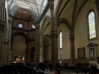 On few occasions do our travels demand degrees of endurance – there's some concern about today's destination: the Campanile di Giotto (1298-1359), 84.7 metres (277.9 ft) tall, 414 steps to the roof level. Anxiety is the companion of big numbers. Also, it's our last day in Firenze (Florence, pop 367,150 in 2022) and we want to see as much as possible.